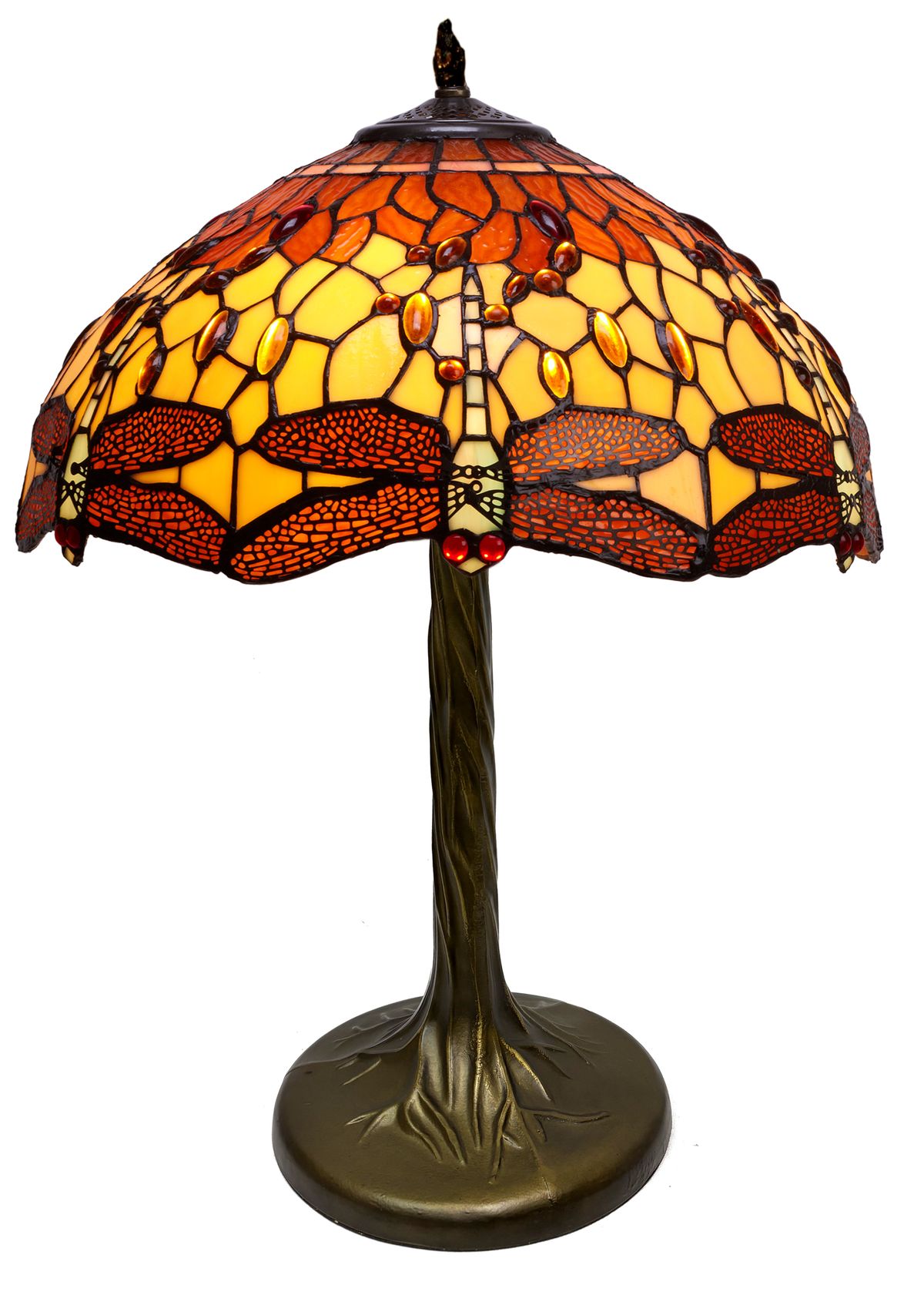 Tiffany Tischlampe Tree Base Serie Belle Amber Durchmesser 40cm Tiffan and Light zertifiziertes original amerikanisches Opalglas hochwertiger Modernist